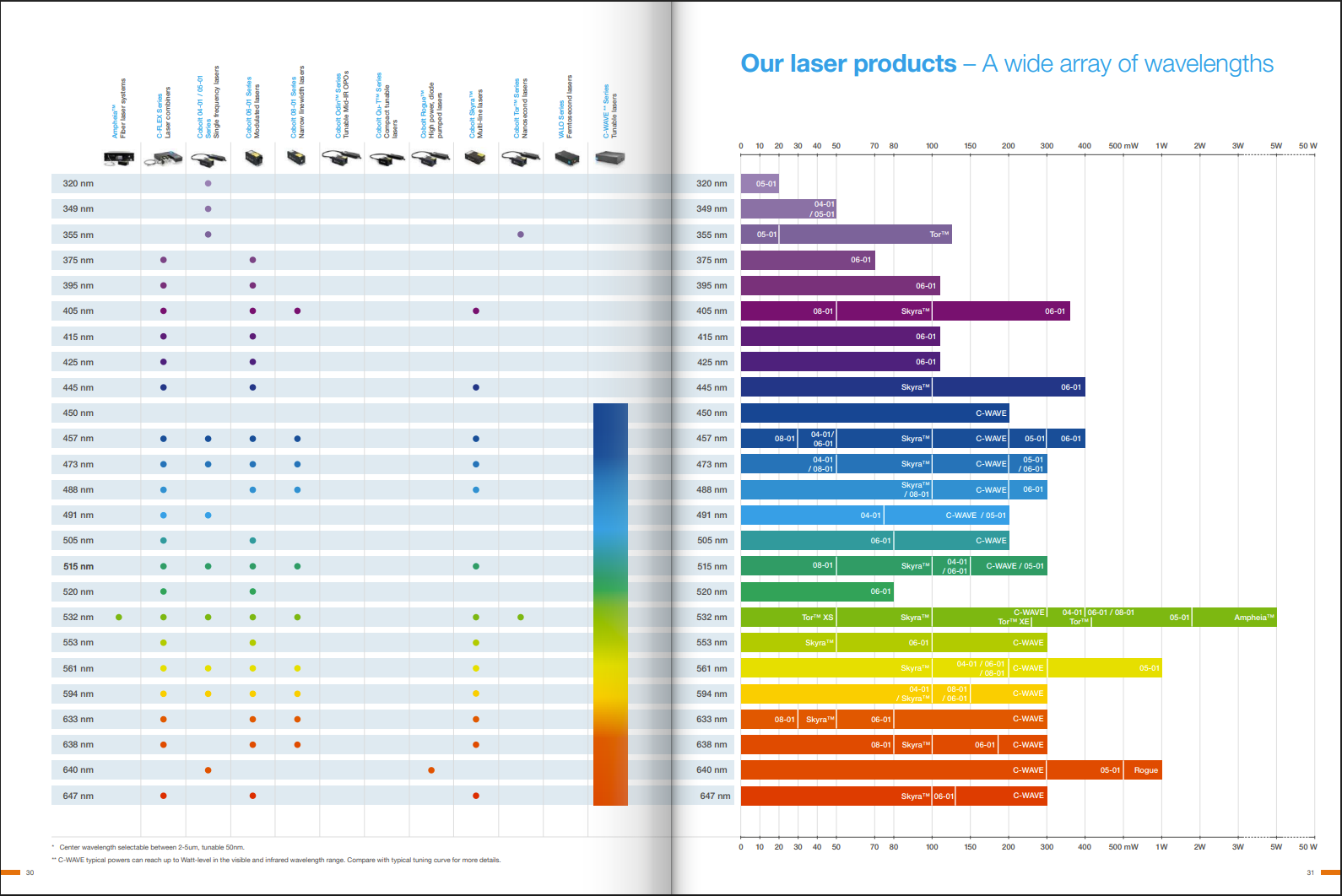 Using proprietary HTCure™ laser manufacturing technology the Cobolt lasers are associated with outstanding reliability and lifetime. Every light source you will ever need Complementing Cobolt’s broad portfolio of compact lasers. Combine the lasers in a highly flexible and extremly compact laser combiner. HÜBNER Photonics also offers one of the most unique kinds of lasers on the market – the award winning singlefrequency, CW, frequency doubled OPO, C-WAVE providing broadly tunable emission across the visible (and NIR) spectrum. By combining the competences across HÜBNER Photonics, volume manufacturing of exceptional laser designs with unparalleled reliability is a reality.
