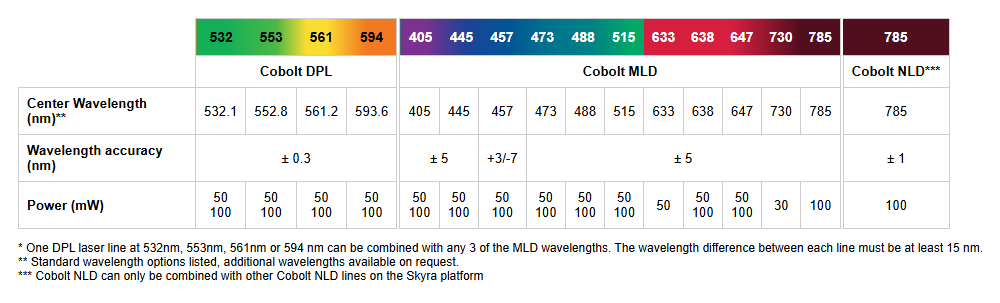 - 405 nm – 785 nm, up to 100 mW of output power per line